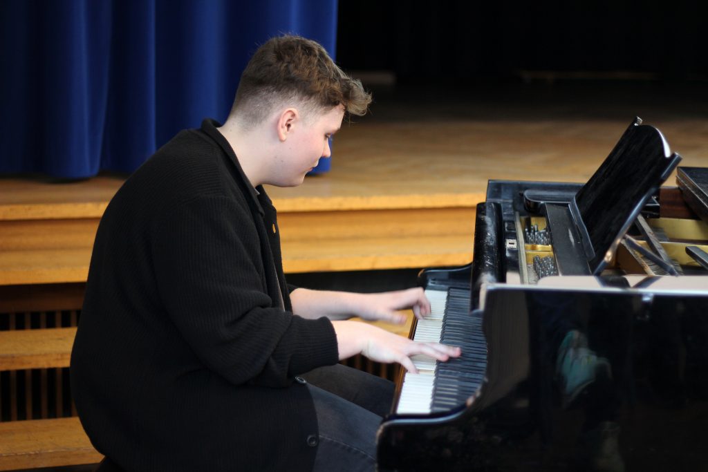 Musikalisch begleitet wurde die Veranstaltung von Minel und Christian aus der Klasse 10b, die ihr großes Talent am Klavier zeigten.