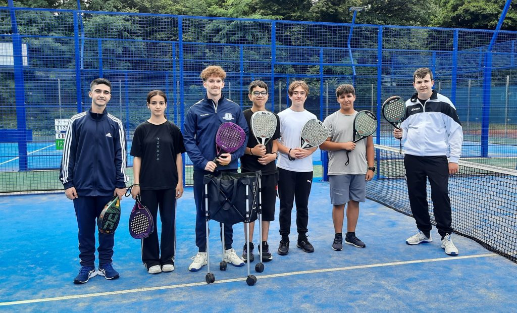 In einer neuen Kooperation mit dem Tennisclub Blau-Weiß Wanne bieten wir erstmals eine Padel-AG an. Jeden Freitag können unsere Schüler*innen auf der Anlage des Tennisclubs den neuen Trendsport mit den kleinen Tennisschlägern ausprobieren. Betreut werden sie dabei von Trainern des Vereins. Die AG wird gesponsert von Verein Ruhrwerk aus Herne. Danke für das tolle Angebot.