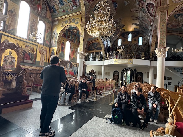 In diesem November hat der Relikurs der Stufe 6 eine Exkursion zur griechisch-orthodoxen Gemeinde unserer Schülerin Amelia in Herten gemacht. Wir haben die hübsche Kapelle und die prächtige geschmückte Basilika besichtigt und durften sogar einen Blick durch die Ikonostase aus das „Allerheiligste“ werfen, das nur der Priester betreten darf. Amelias Patenonkel führte uns herum und beeindruckte uns redegewandt mit seinem gewaltigen Wissen. Ein großartiger Abschluss für unsere Unterrichtsreihe zum Thema „Katholisch, evangelisch, orthodox“.