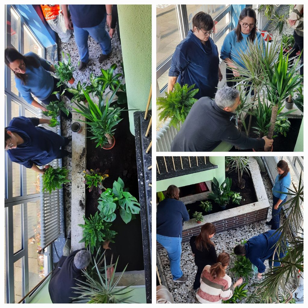 Angeregt durch eine Initiative einiger Eltern haben sich heute fleißige Gärtner*innen aus dem Kollegium mit Vätern, Müttern und Omas unserer Schülerschaft getroffen, um eine bisher unschöne Ecke des Treppenhauses wieder in eine grüne Oase zu verwandeln. Das gemeinsame Arbeiten hat großen Spaß gemacht und das Ergebnis kann sich wirklich sehen lassen.