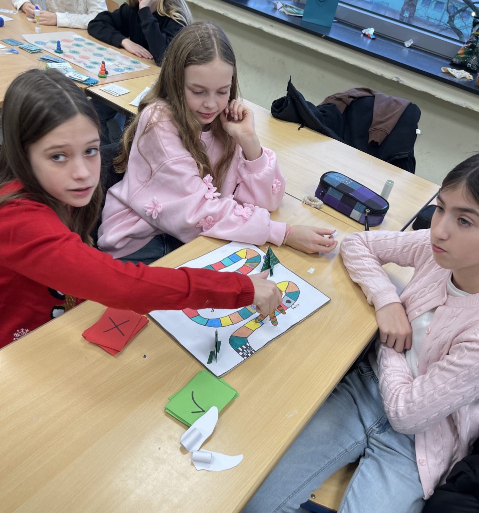 Die Klasse 6c hat die letzten Mathestunden vor den Weihnachtsferien dazu genutzt, in kleinen Gruppen ein weihnachtliches oder winterliches Mathe Spiel zu erstellen. Dabei sind tolle Spiele entstanden. Diese haben die Kinder in wechselnden Gruppen gemeinsam vor den Ferien gespielt (und dabei nebenbei noch Mathe geübt!).